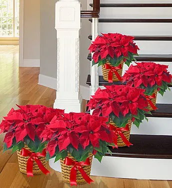 The radiant red poinsettia is a staple of the holiday season, so we’ve put together a package of fresh blooming poinsettia plants—available in sets of two, three, four, five or six. After all, when it comes to decking the halls of your home or office, the more the merrier!