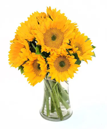 The Endless Summer Sunflower Bouquet exudes sunshine and warmth with each brilliant petal! Assorted sunflowers create a dazzling display seated in a clear glass vase making a fantastic summertime display for your special recipient.