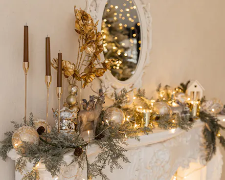 New Year's Eve is your moment to go all in on the razzle dazzle of the occasion. Let your décor channel the moment with glowing candlelight, metallic details, and playful elements, such as disco balls. Layer textures like velvet cushions, shimmery table runners, and reflective glassware to create a space that feels comfortable and luxurious. Choose a color palette that sets the mood, like classic gold and silver, moody jewel tones, or modern black and white with pops of sparkle. Lighting makes a big difference too; dim overhead lights and let candles, string lights, or even LED fairy lights do the job.